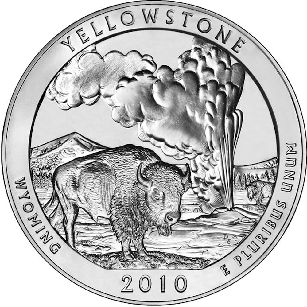 The second coin released under the United States Mint's America the Beautiful Quarters Program was the 2010 Yellowstone National Park Quarter from Wyoming.
