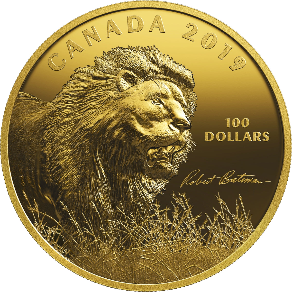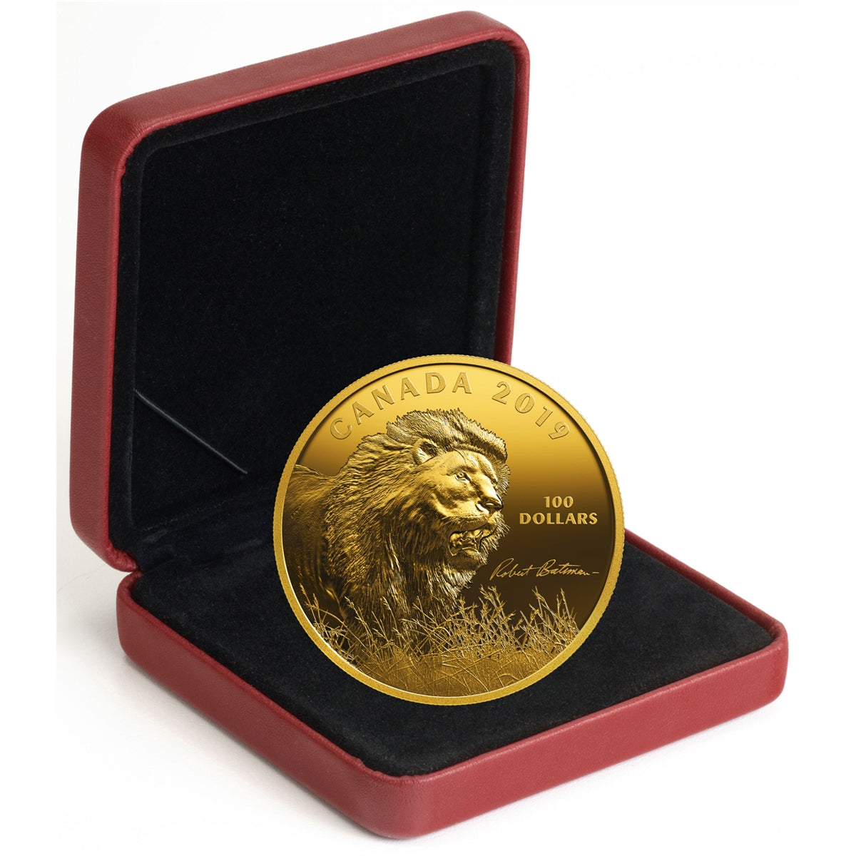 The lion is a symbol of majesty as well as might and the "king of the jungle" makes his first appearance in a pure silver coin in this $100 Into the Light - Lion Fine Silver Coin that's fully gold-plated to deliver a golden hour glow. With a design from Robert Bateman, Canada's foremost wildlife artist and naturalist, the coin delivers a realistic art style that pays tribute to the Bateman's legacy.