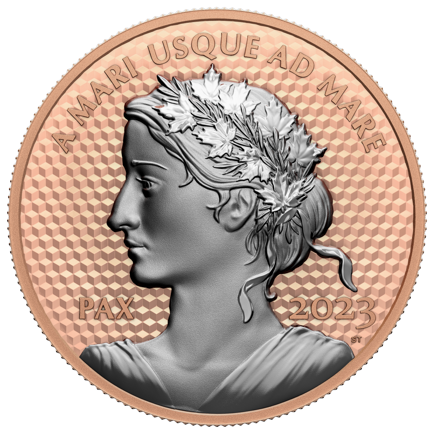 The allegory on the coin’s reverse first appeared on the 2019 Peace and Liberty medal before becoming a fixture on Canada’s annual Peace Dollar coins.