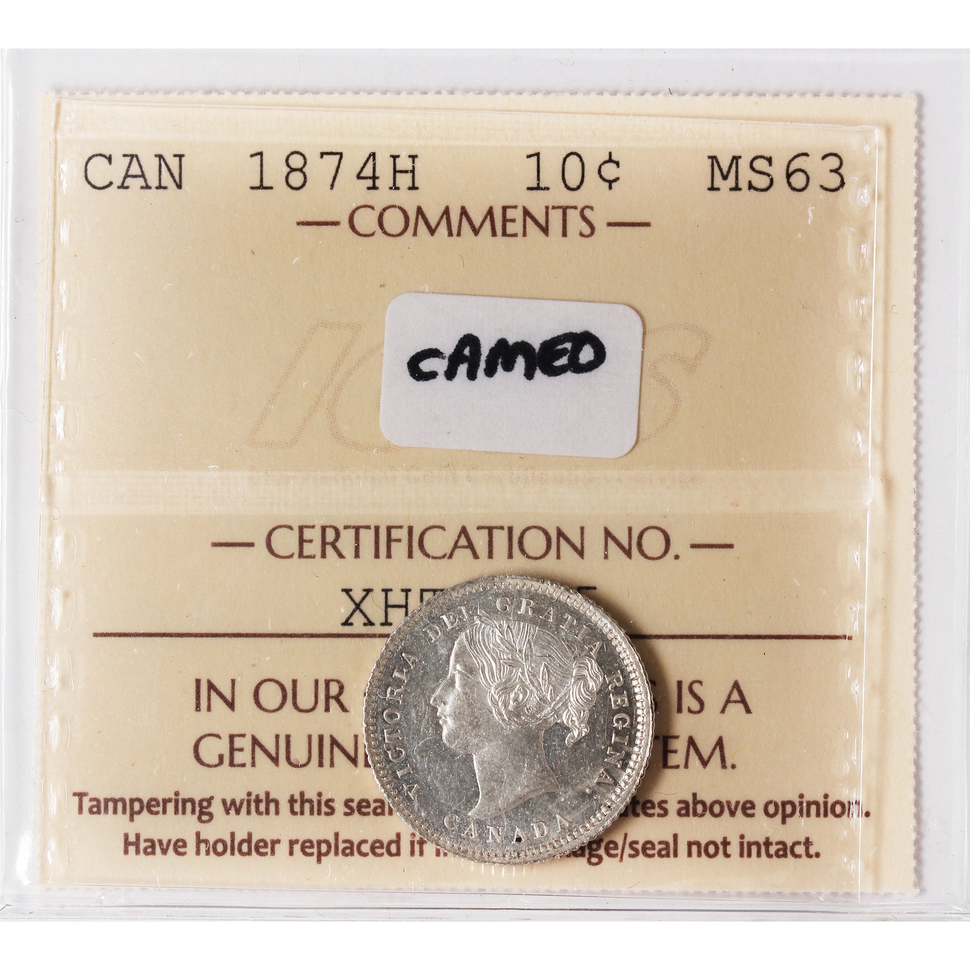 1874H Canada 10-cents ICCS Certified MS63 Cameo (XHT 115)