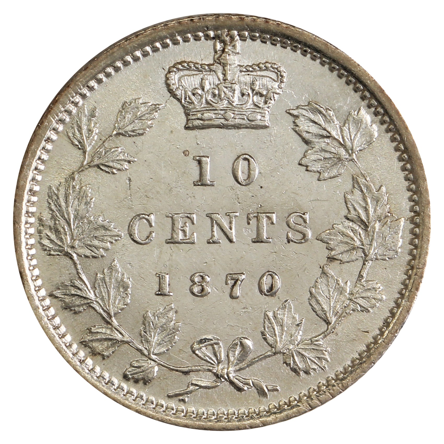 1870 Wide O, 1/1, 8/8, 0/0 Canada 10-cents AU-UNC (AU55) $