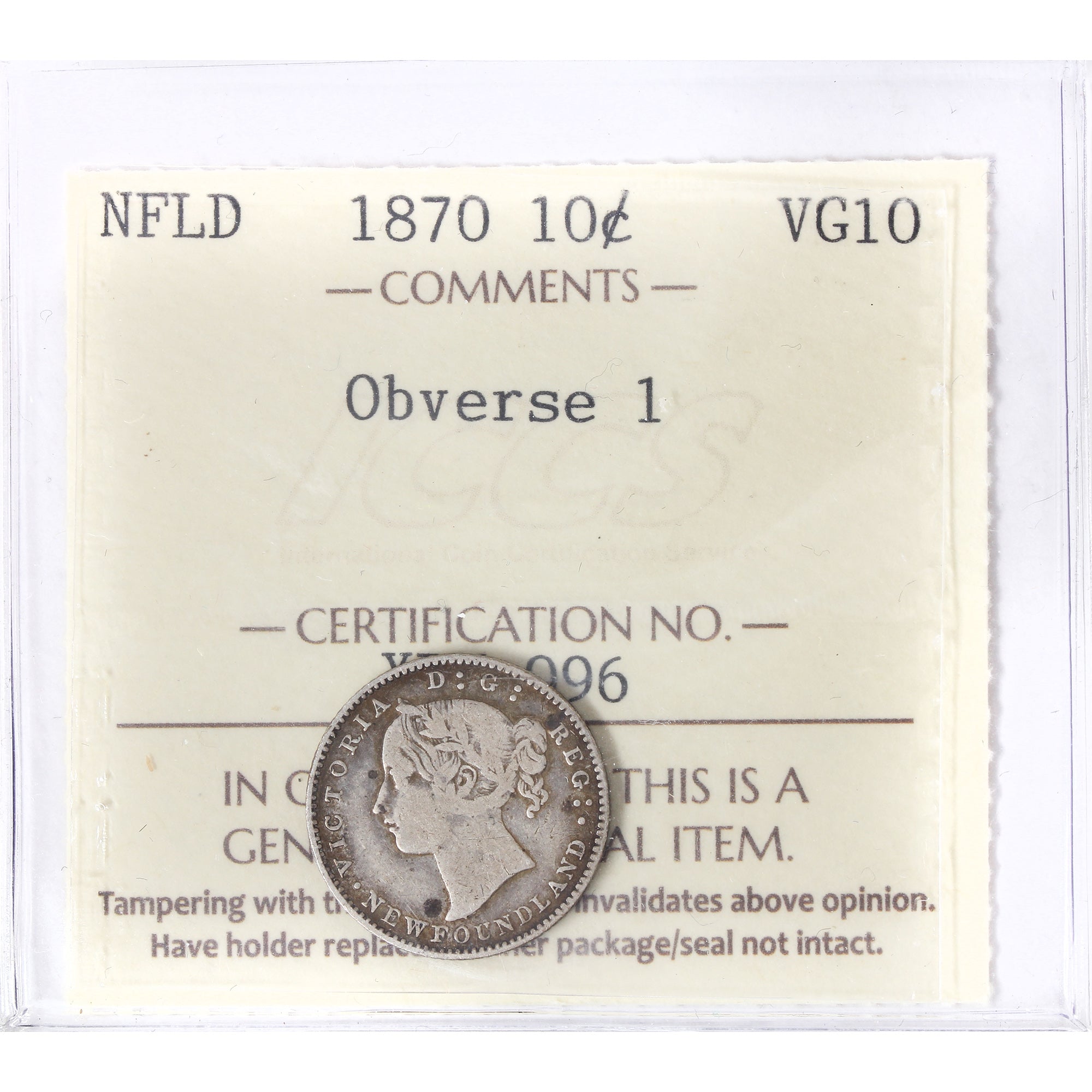 1870 Obverse 1 Newfoundland 10-cents ICCS Certified VG-10