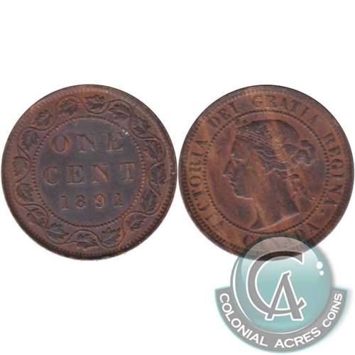 1891 Small Leaves, Small Date Obverse 2 Canada 1-cent F-VF (F-15)