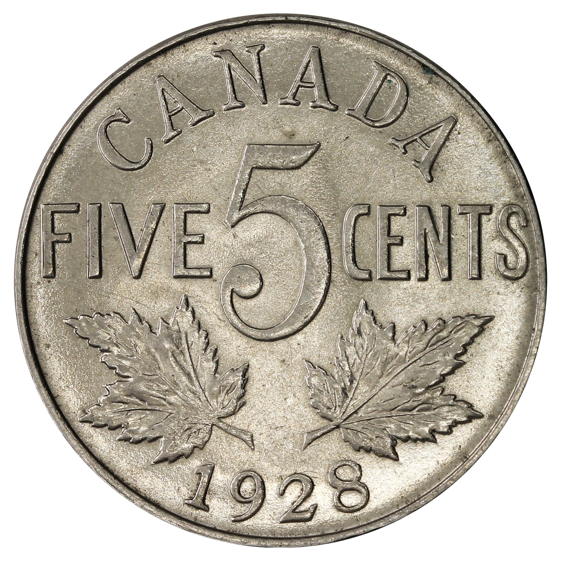 1928 Canada 5 Cents Brilliant Uncirculated (MS-63)