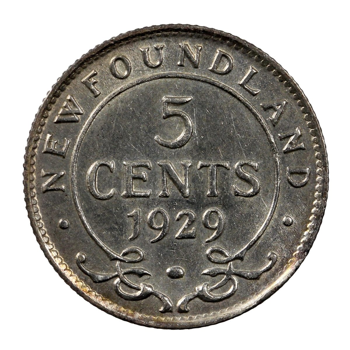 1929 Newfoundland 5-cents AU-UNC (AU55) $