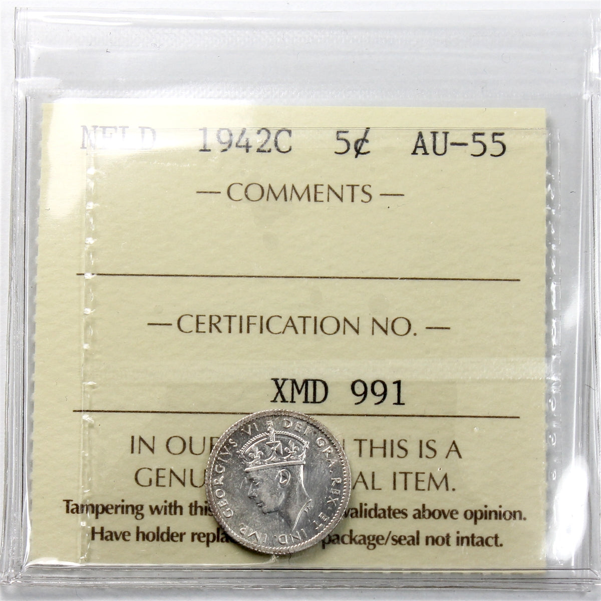 1942C Newfoundland 5-cents ICCS Certified AU55