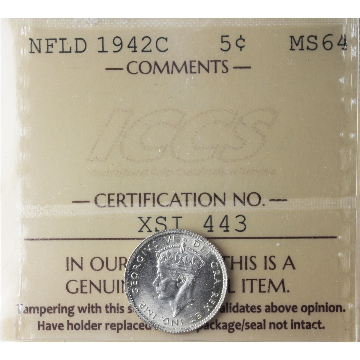 1942C Newfoundland 5-cents ICCS Certified MS-64