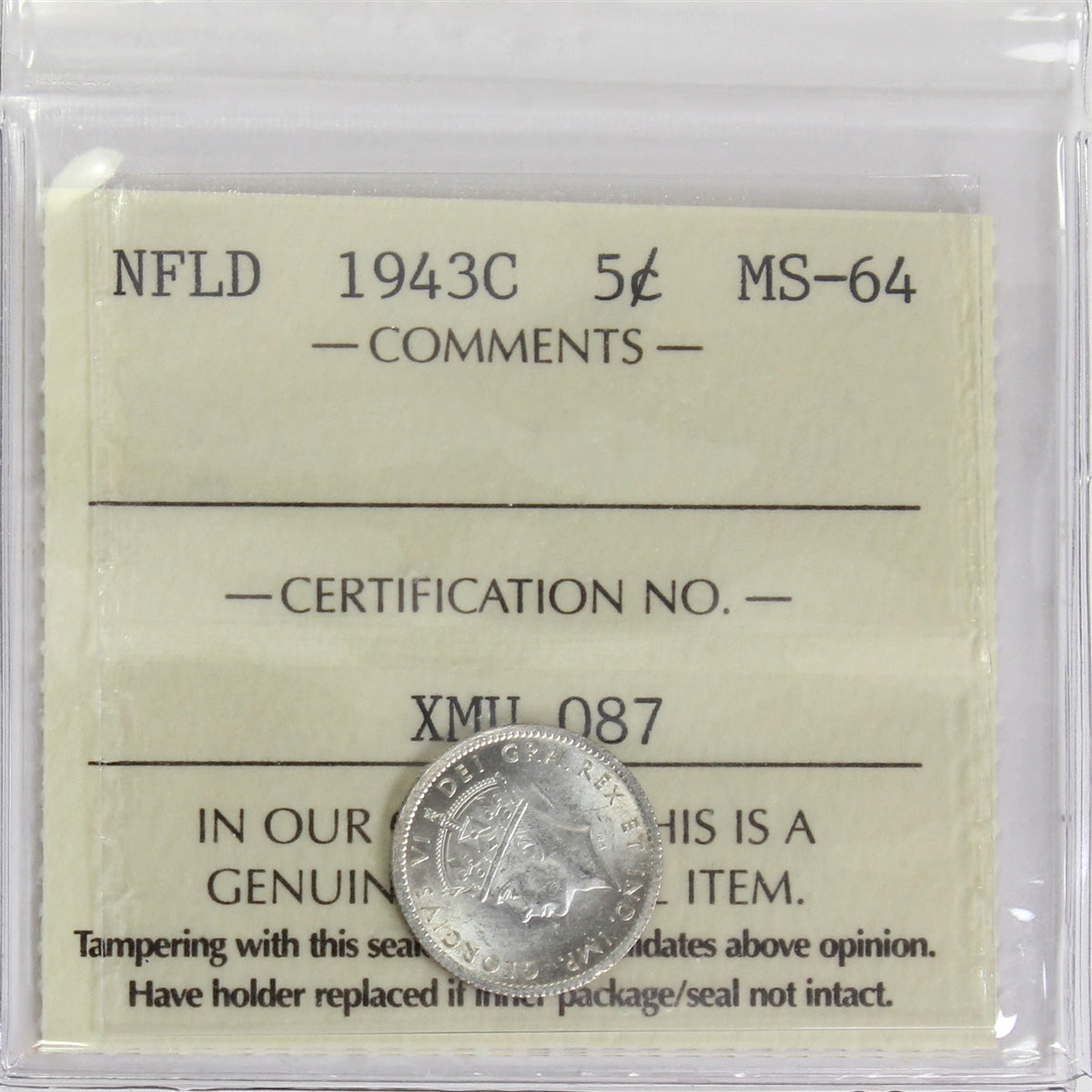 1943C Newfoundland 5-cents ICCS Certified MS64