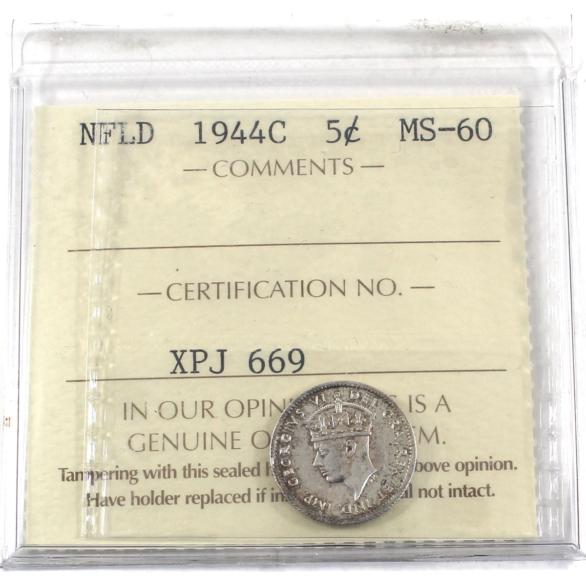 1944C Newfoundland 5-cent ICCS Certified MS-60