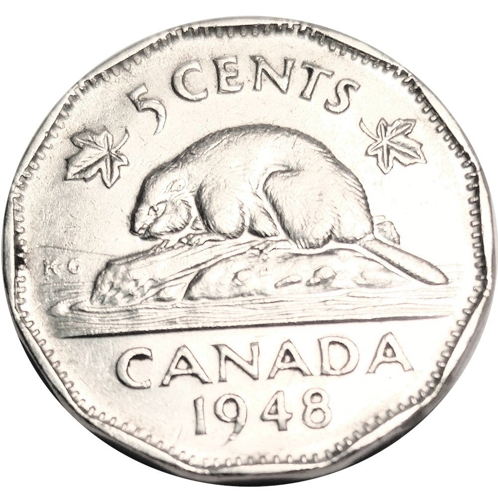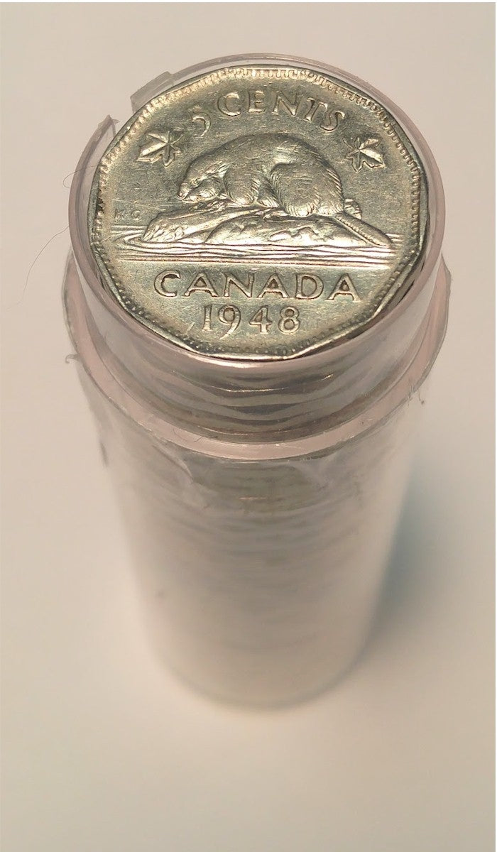 1948 Canada 5-cent Roll of 40pieces in average circulated condition (semi key date). 40pcs