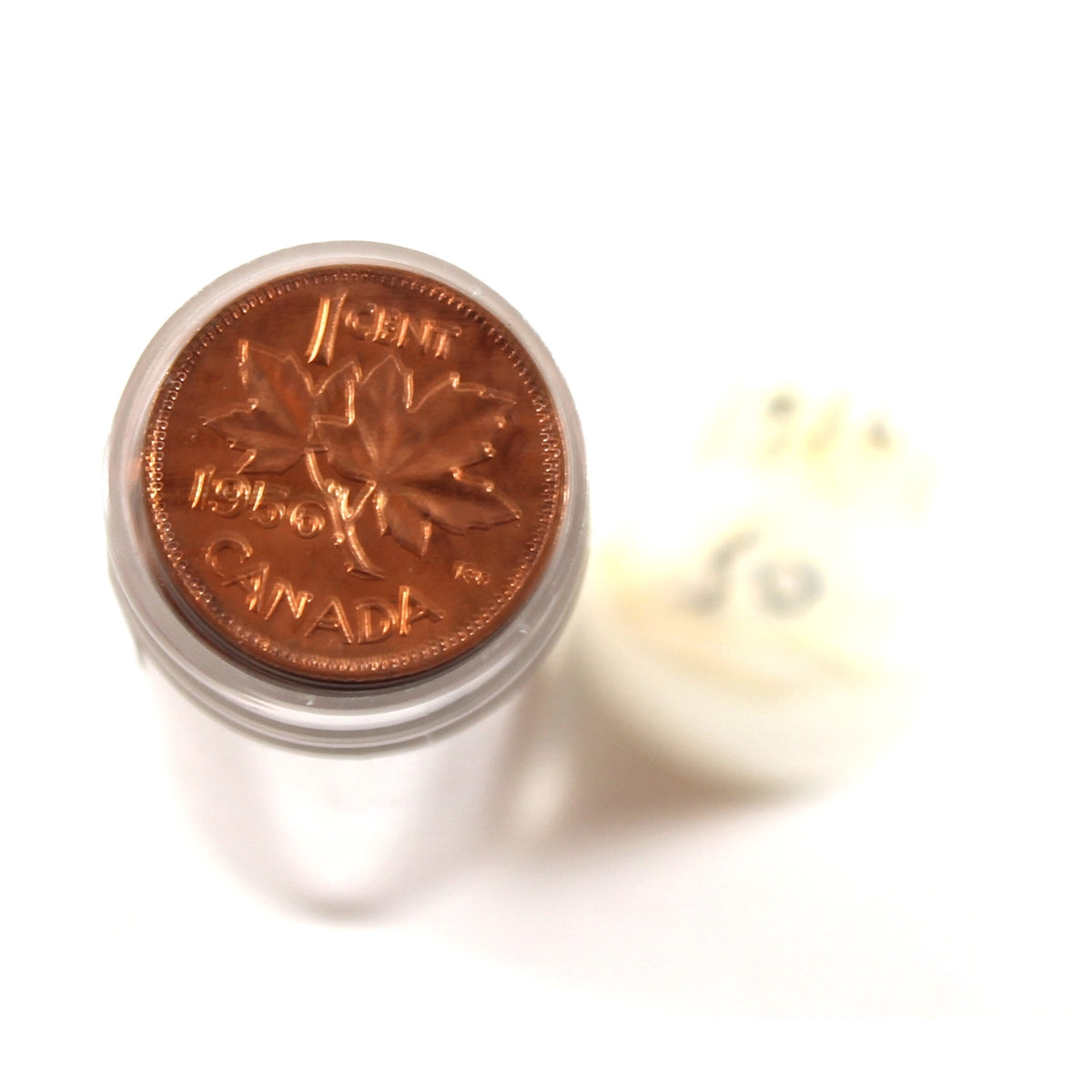 1956 Canada 1-Cent Roll of 50Pcs, Mint State (Some Toned) Very Scarce!