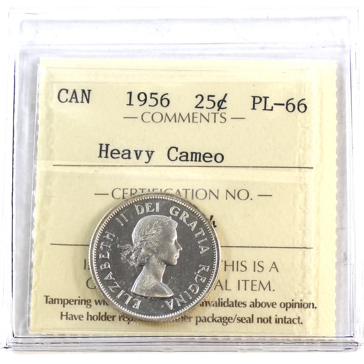 1956 Canada 25-cents ICCS Certified PL-66 Heavy Cameo