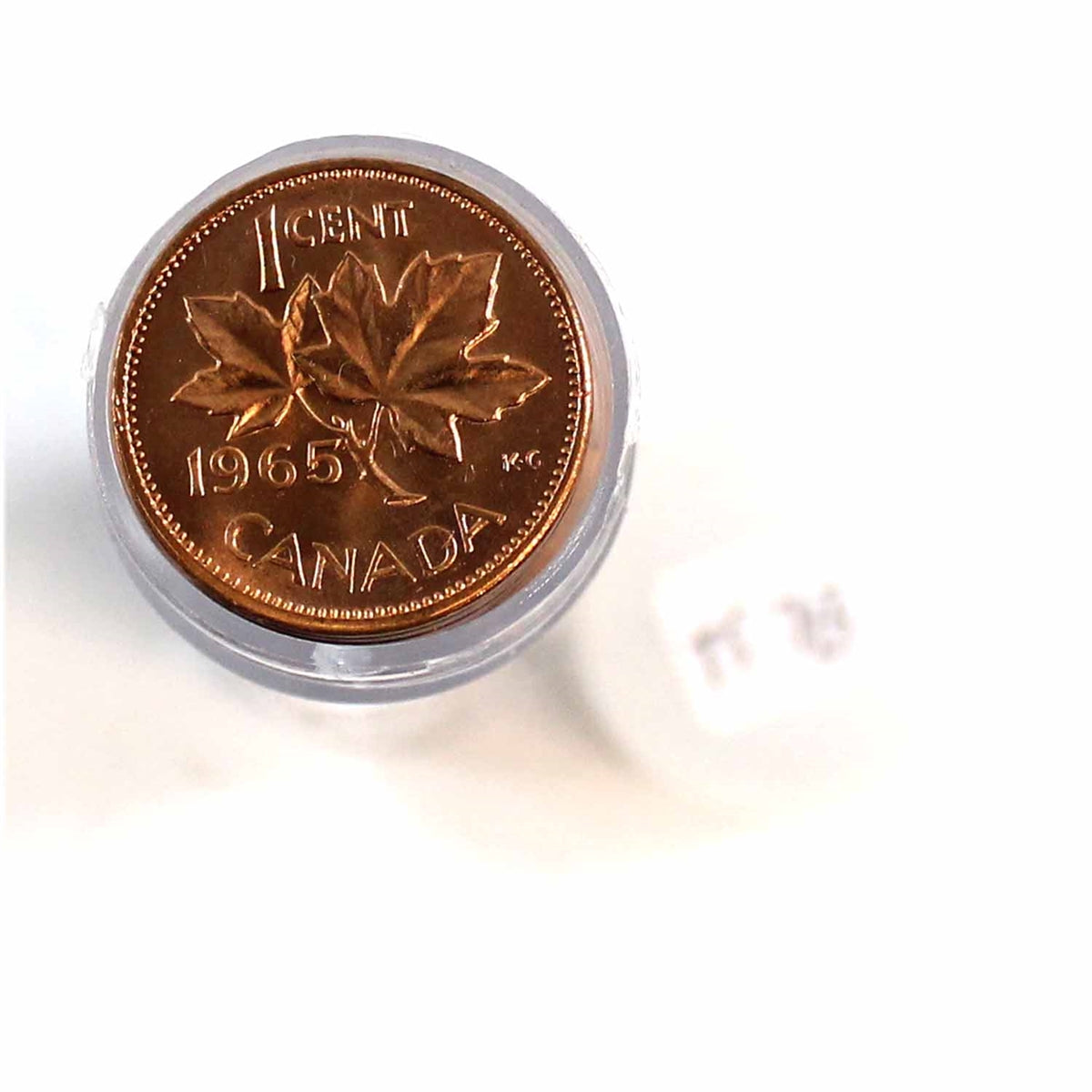 Scarce! 1965 Variety One (Small Beads, Ptd 5) Canada 1-cent Roll of 50Pcs, Mint State