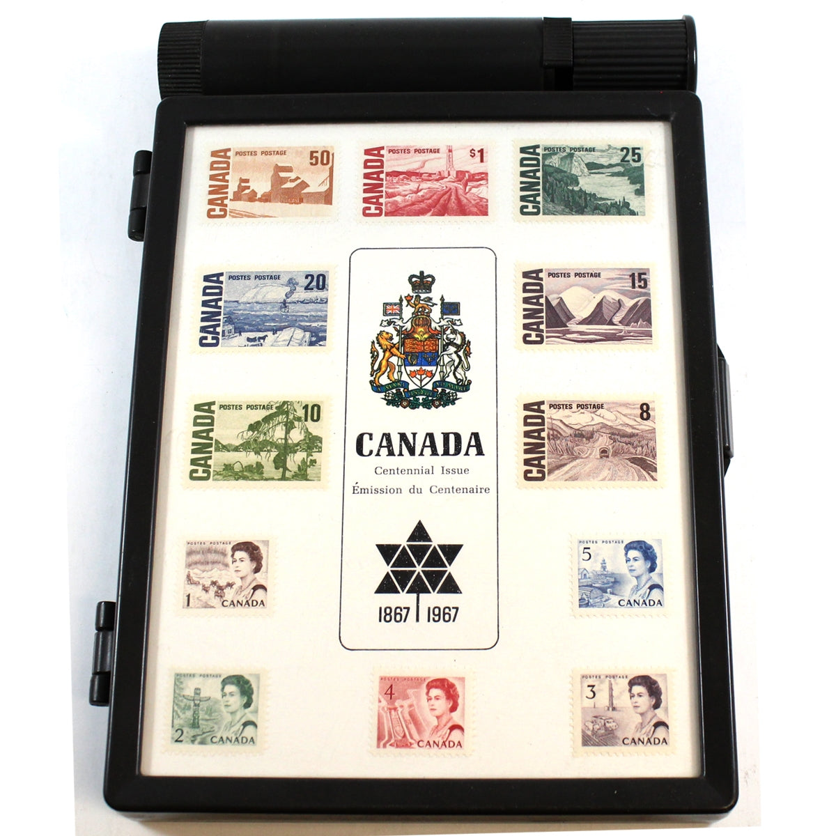 1967 Canada Centennial Stamp Box with 12x Regular Issue Postage Stamps (Issues)