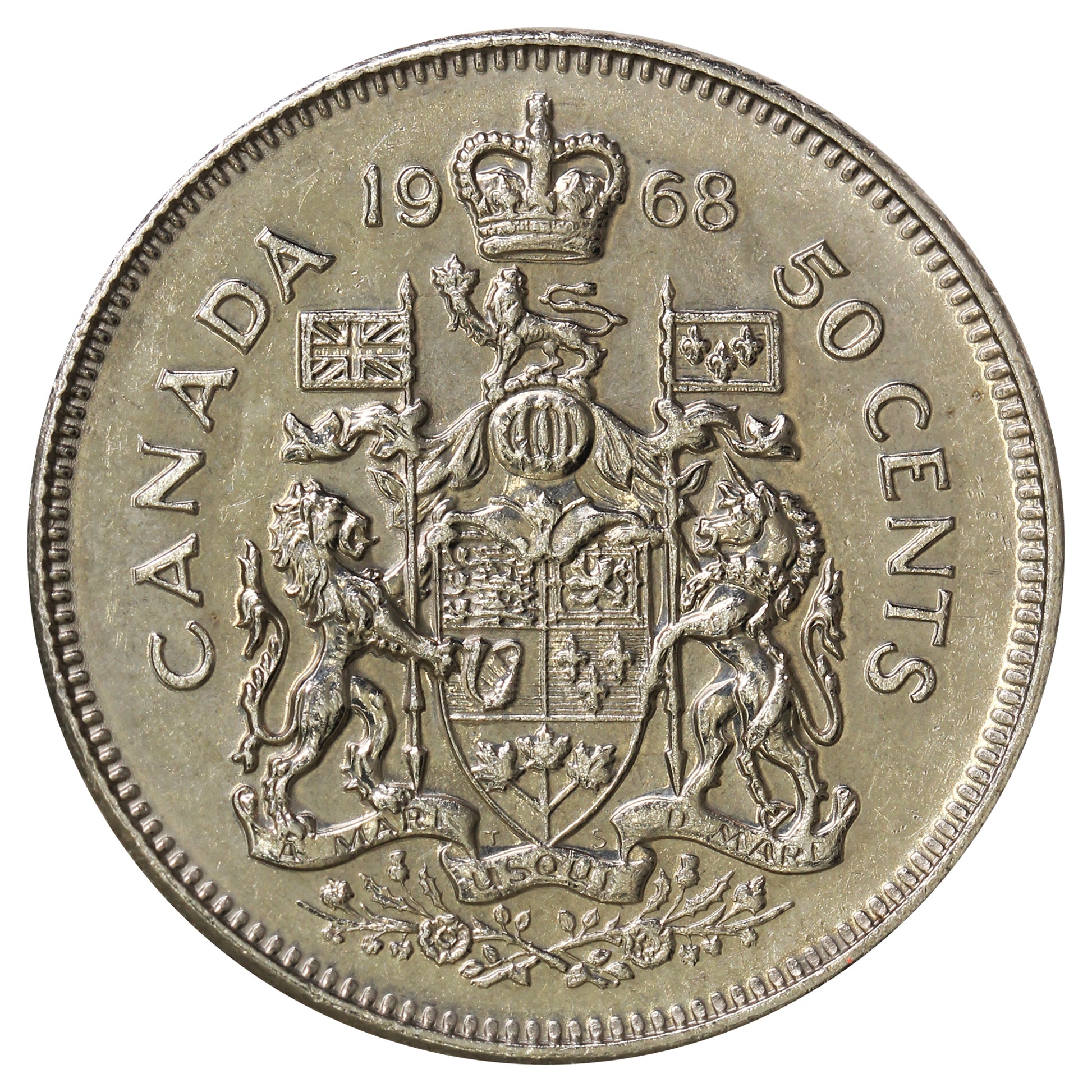 1968 Missing A Canada 50-cents Almost Uncirculated (AU50)