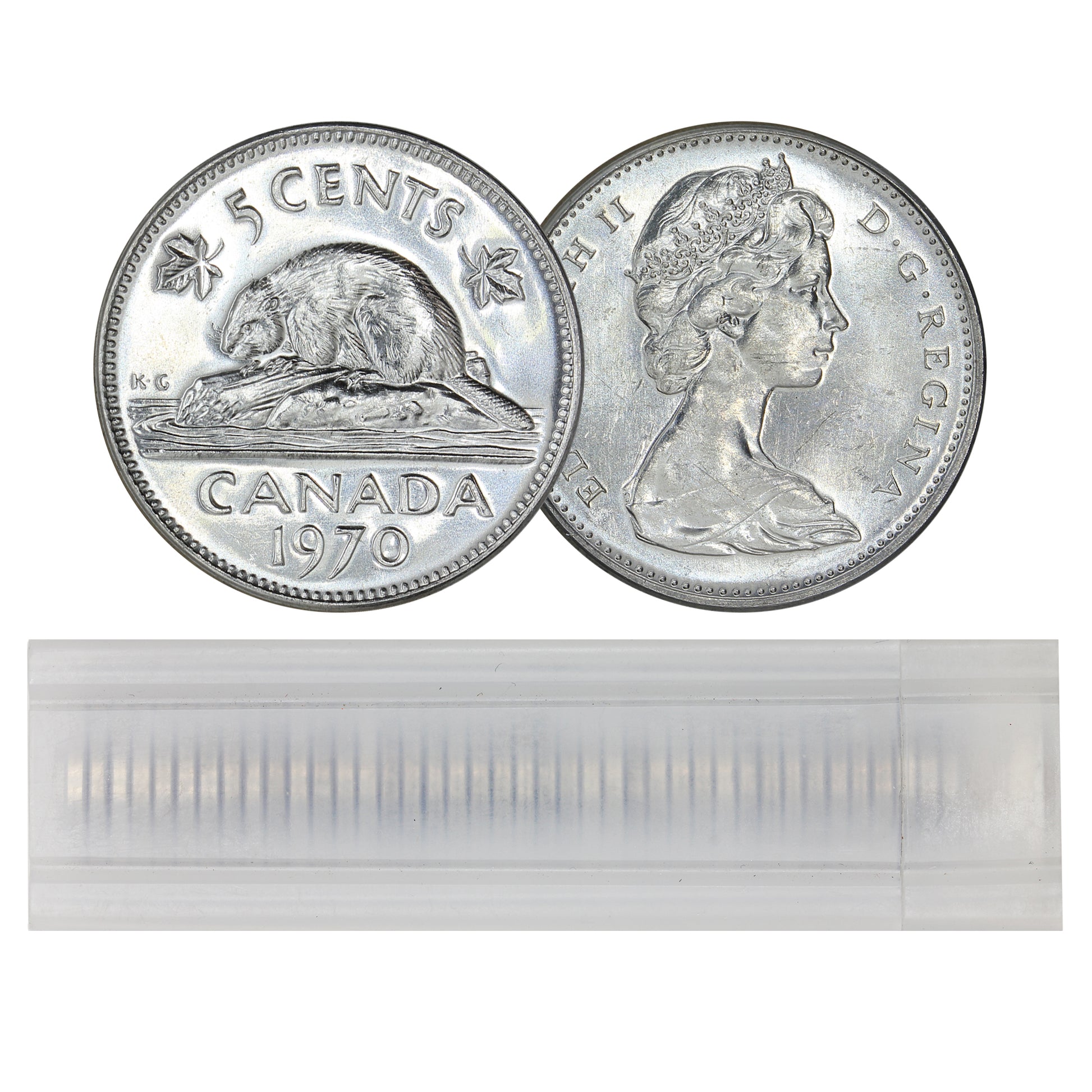 1970 Canada 5-cent Roll of 40Pcs, Appear Mint State (Some toned). May be contained in a paper wrap or plastic tube. Image is an example of what you will receive (may either have 51 or 49pcs sometimes)
