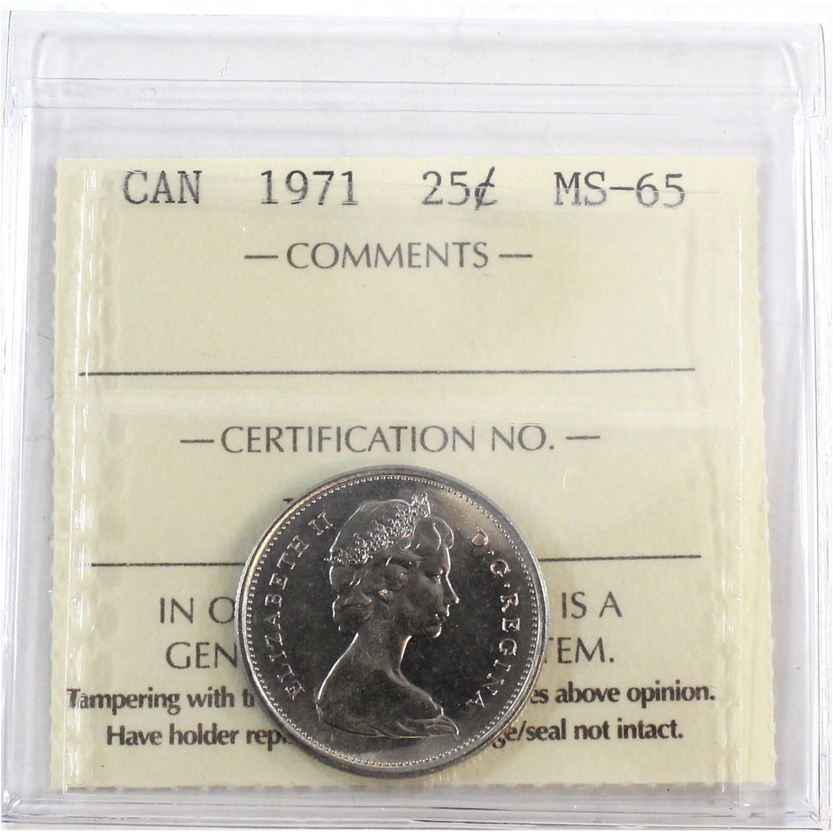 1971 Canada 25-cents ICCS Certified MS65