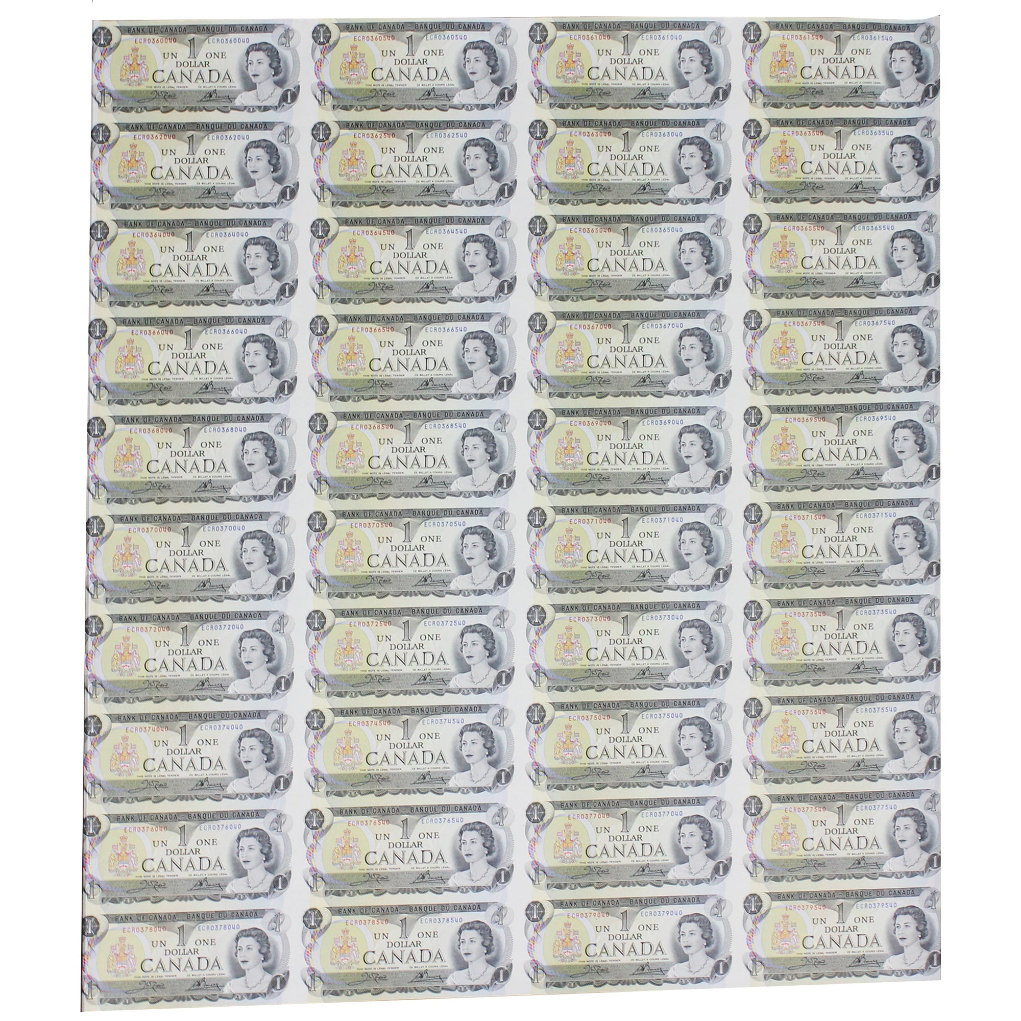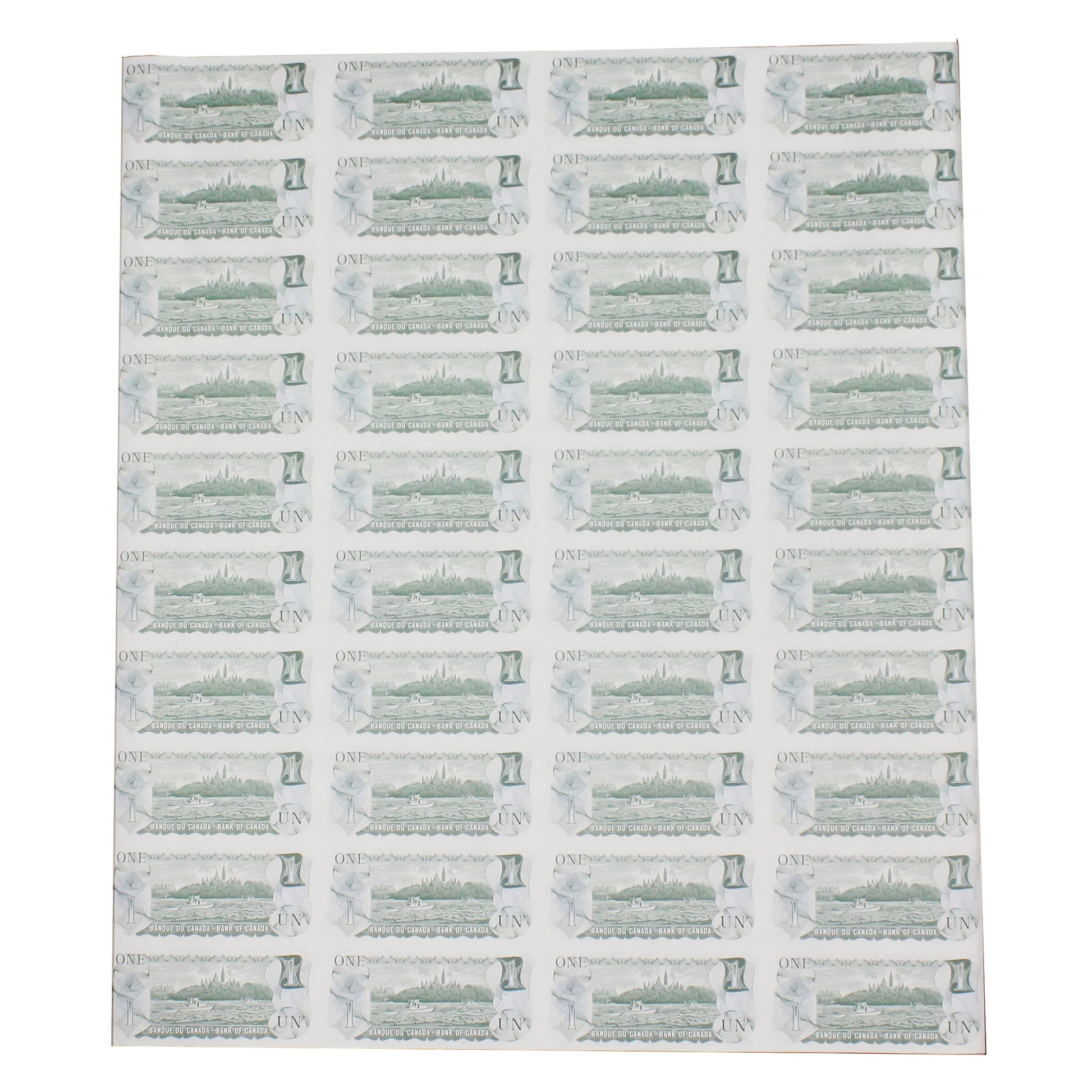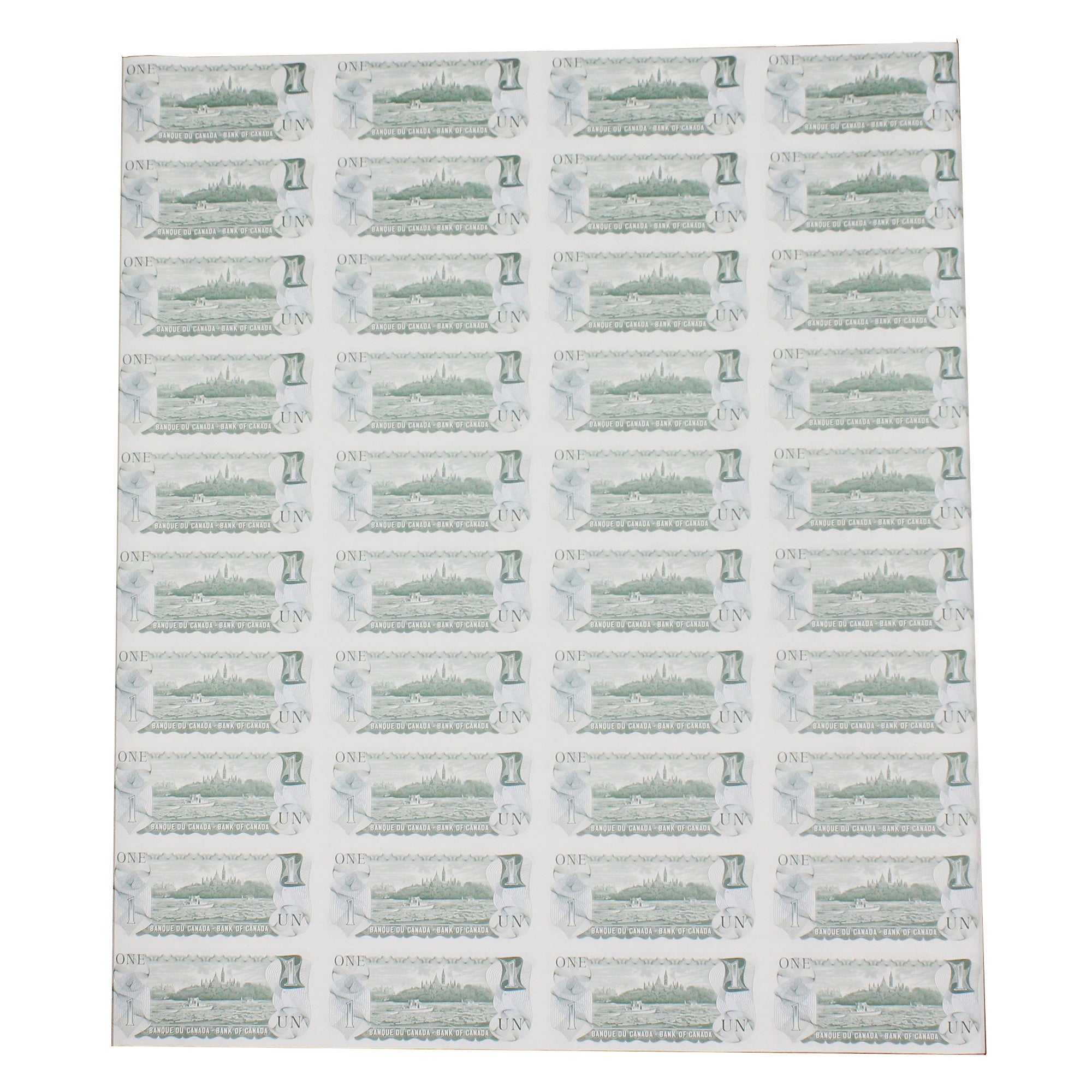 1973 Canada $1 ECR Prefix Uncut Sheet of 40 Notes - 4x10 Format
