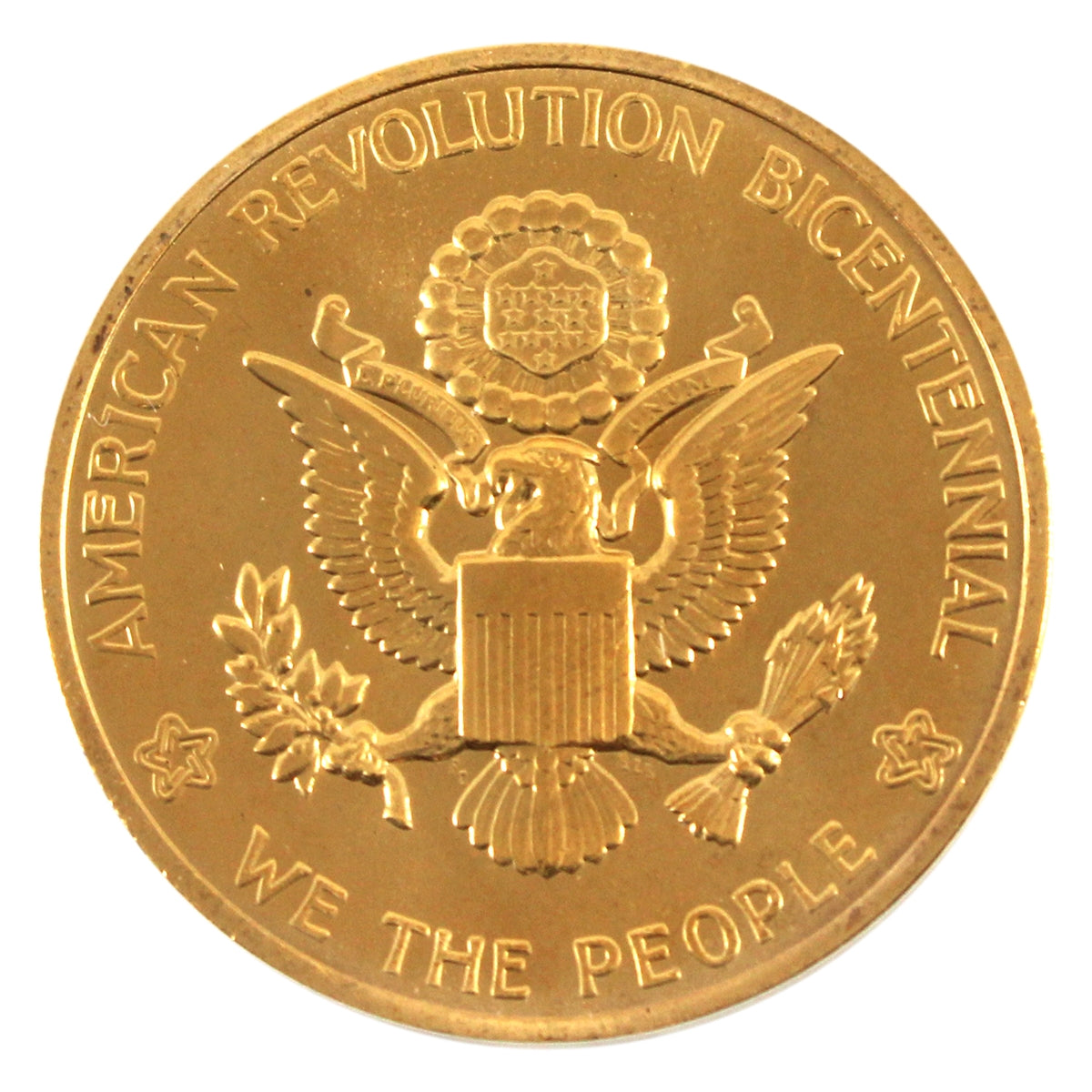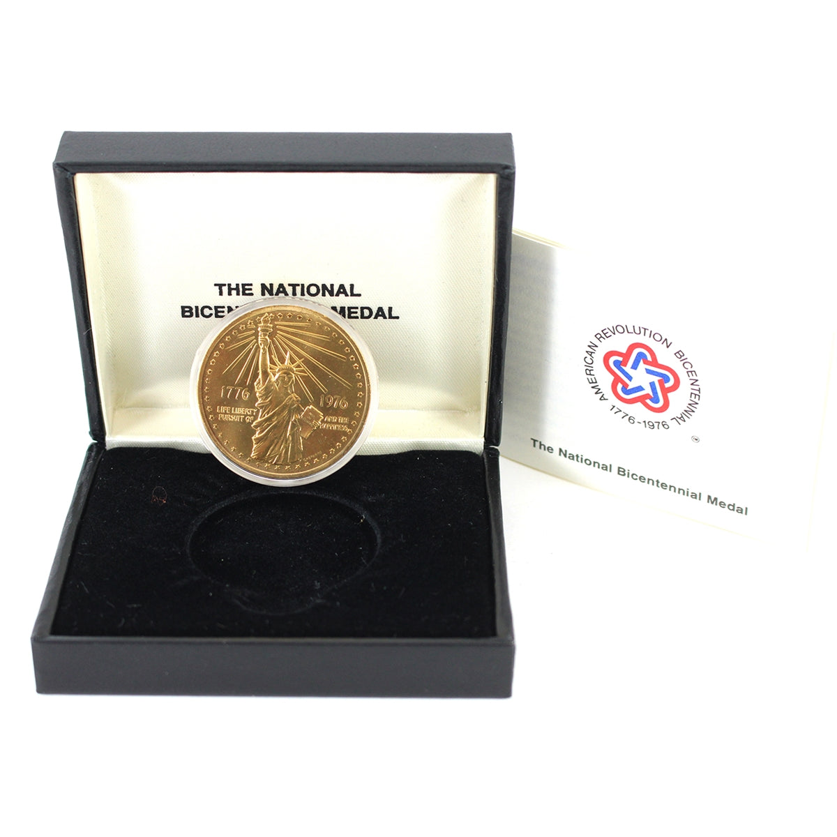 1976 USA National Bicentennial Medal in Case (May have spots and/or scratches, and the accompanying booklet may be mildly stained). These medals were sold in a variety of sizes and compositions. Image is an example of what you will receive.