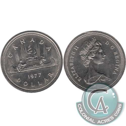 1977 Var. 2 Det. Jewel LWL Canada Nickel Dollar Uncirculated (MS60)