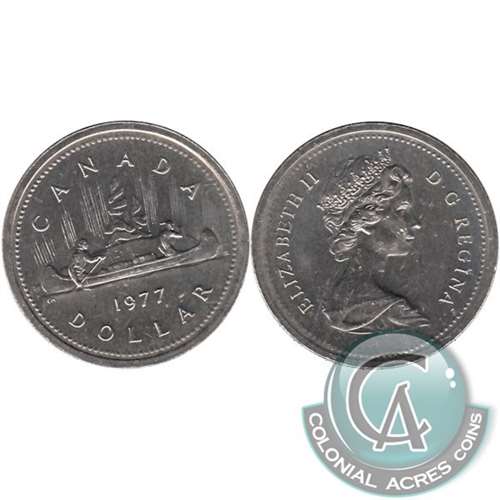 1977 Variety 3 Detached Jewel, Short Water Line Canada Nickel Dollar Circulated