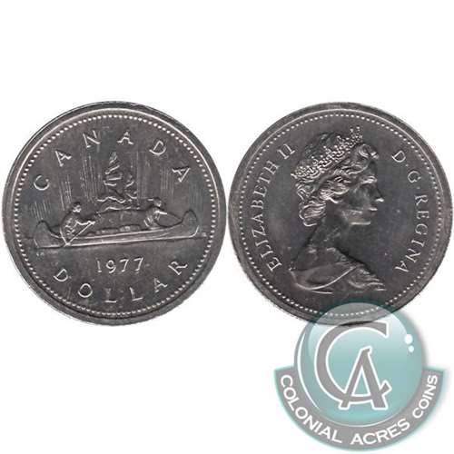 1977 Variety 3 Detached Jewel, Short Water Line Canada Nickel Dollar Uncirculated (MS-60)