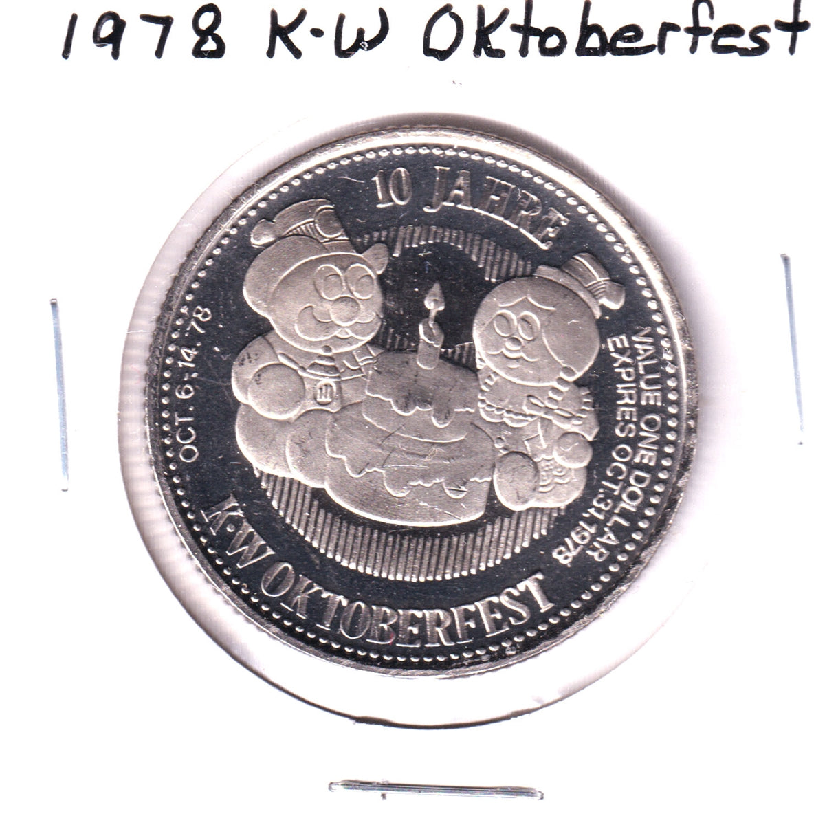 1978 Kitchener-Waterloo Oktoberfest 10th Anniversary Trade Dollar Token. Image is an example of what you will receive.