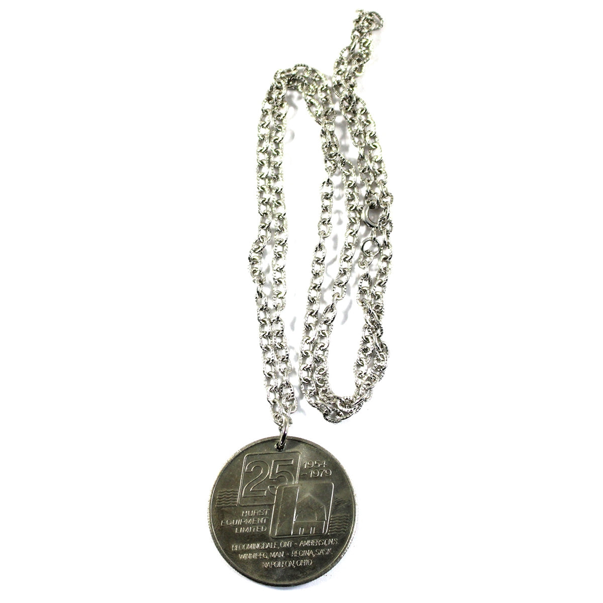 1979 Hurst Equipment 25th Anniversary Medallion & Chain: Agriculture Serves Man As Man Serves Agriculture. The cupro-nickel medallion has a diameter of about 32mm and with its chain weighs about 21.67 grams.