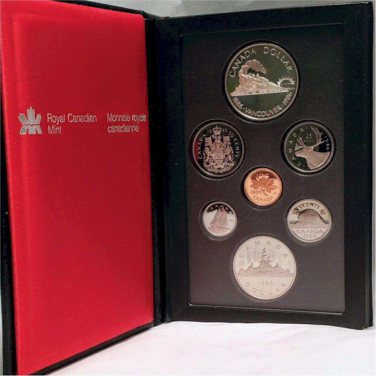 1986 Canada Proof Double Dollar Set Commemorating the Centennial and the Arrival of the First Trans-Canada Train in Vancouver. **Please note that the Silver Dollar may be lightly toned, which is typical for this type of set**