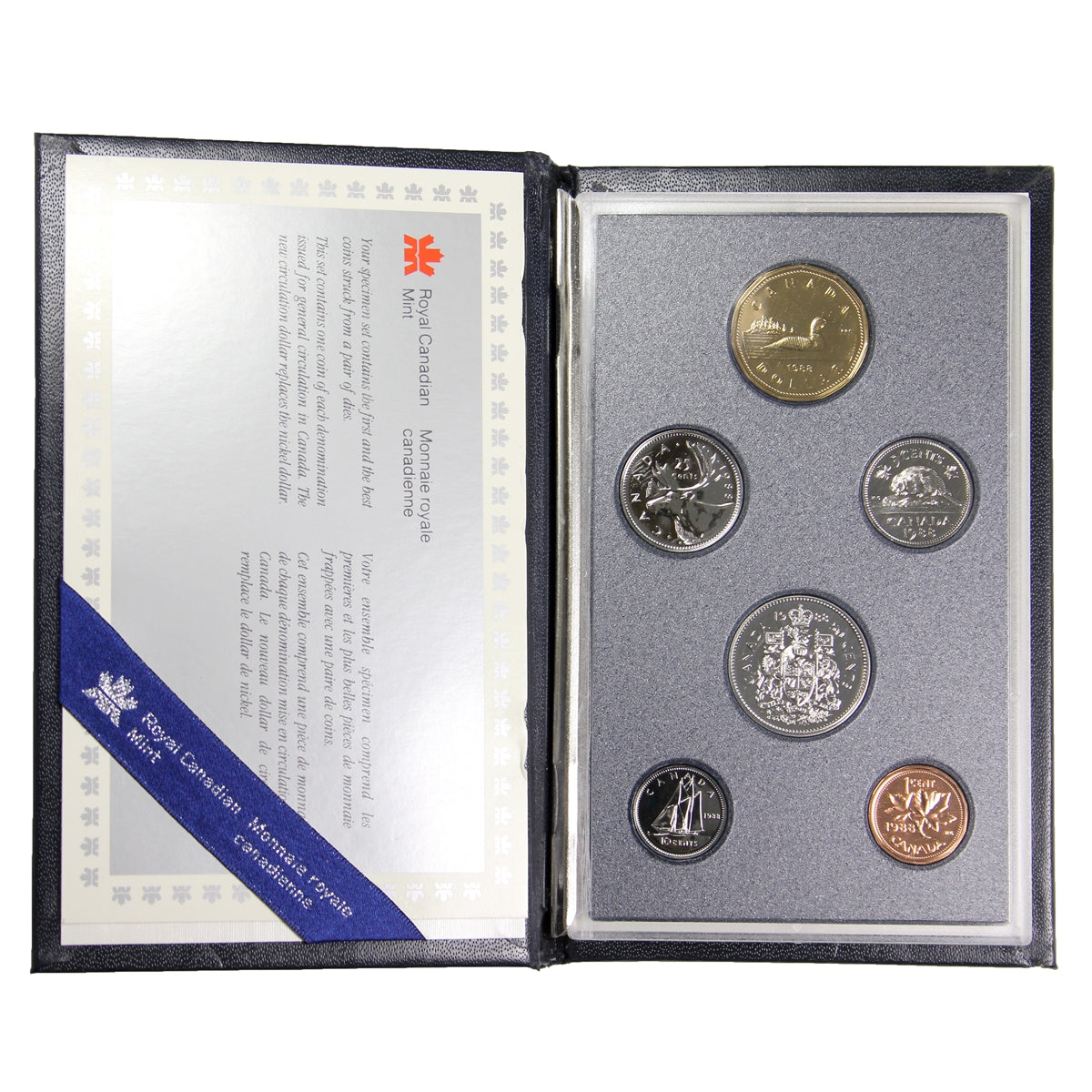 1988 Canada 6-coin Specimen Set. Does not include outer sleeve. May lack specifications card. Sets have light issues. Image is an example of the set.