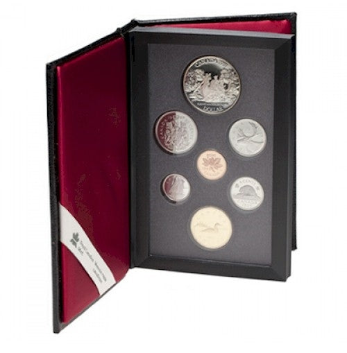 Set comes in a black case with red satin interior. The bicentennial of the first full length voyage of the Mackenzie River by Alexander Mackenzie and his European crew, all the way to Arctic Ocean, is commemorated on the 1989 Silver Dollar.
