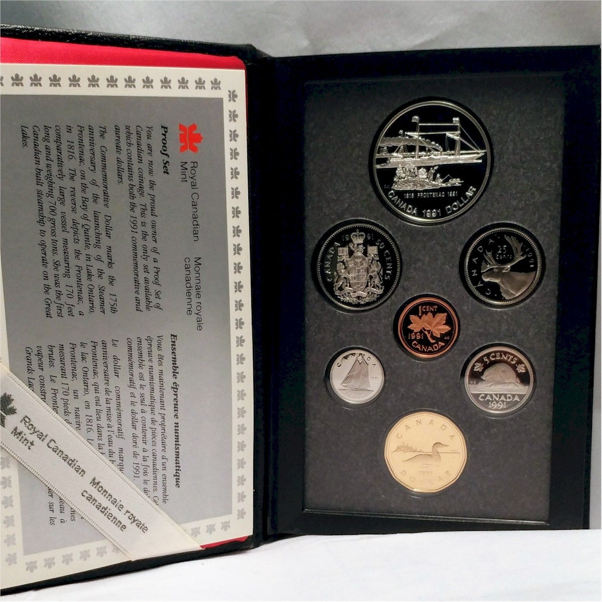 1991 Canada Proof Double Dollar Set Commemorating the 175th Anniversary of the First Steamship to sail on the Great Lakes.