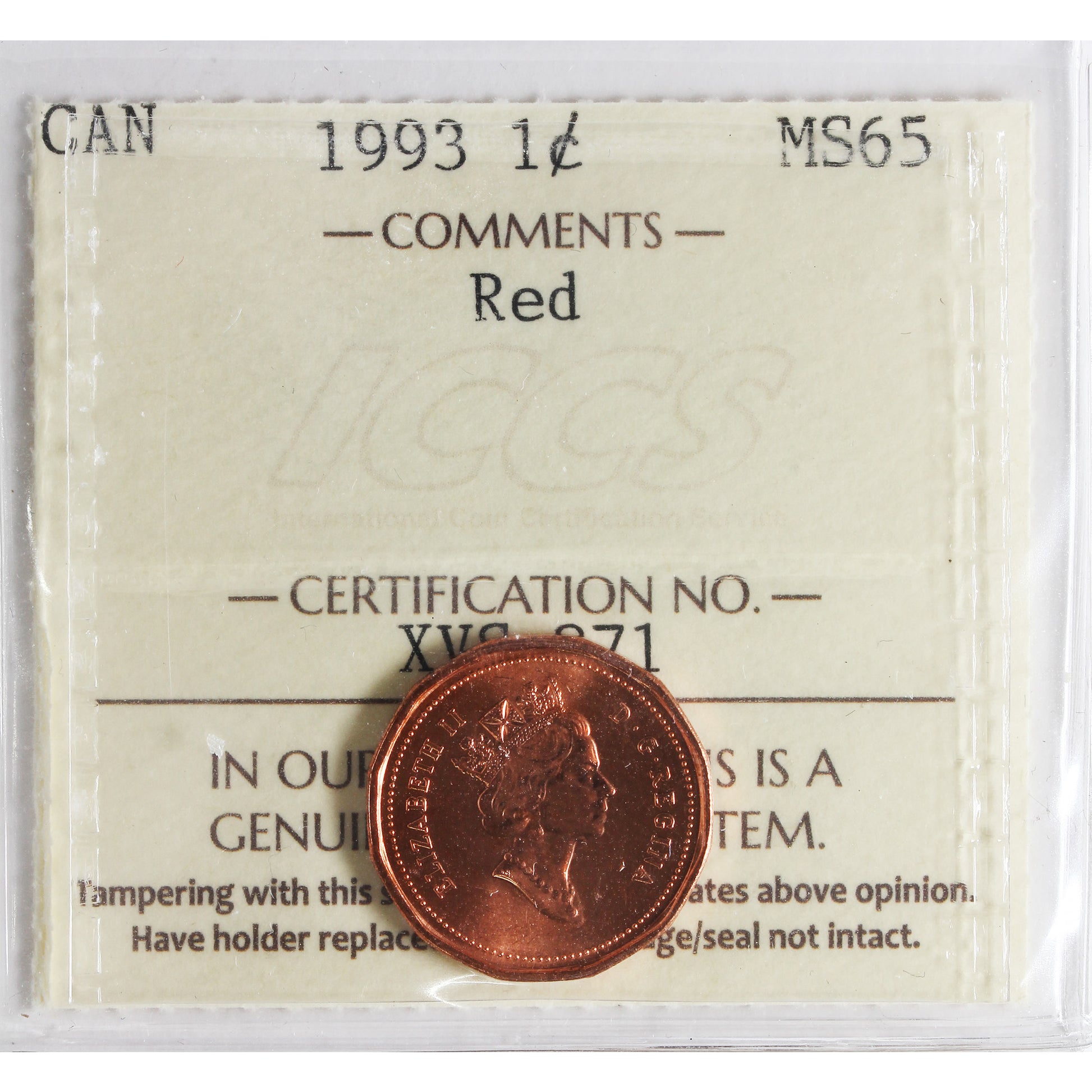 1993 Canada 1-cent ICCS Certified MS65 Red