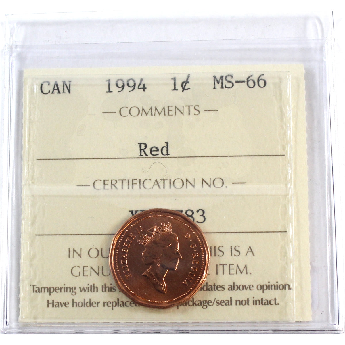 1994 Canada 1-cent ICCS Certified MS66 Red