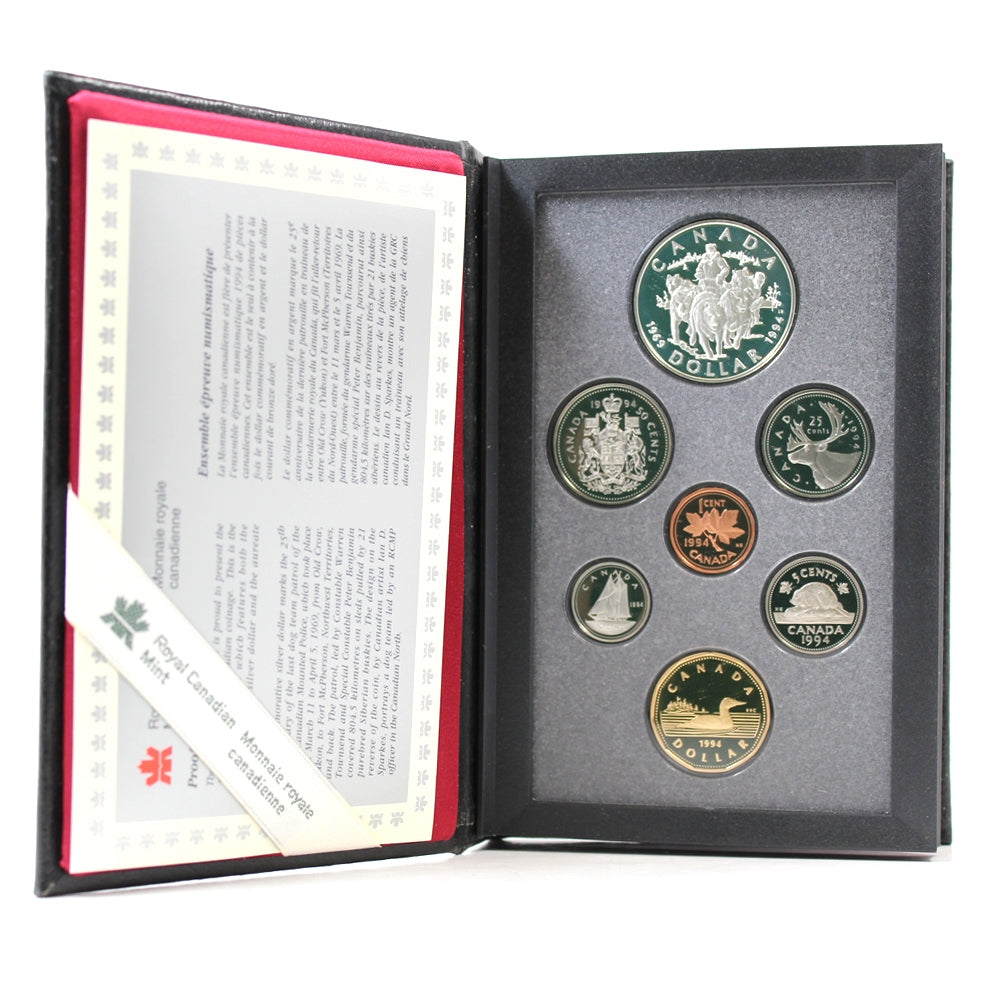 1994 Canada Proof Double Dollar Set Commemorating the Royal Canadian Mounted Police Northern Dog Team Patrol.