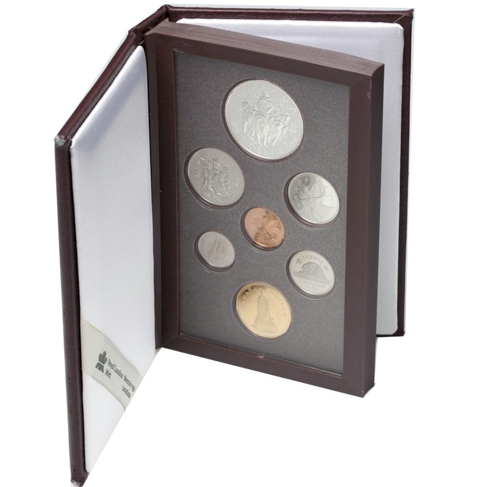 The Royal Canadian Mint is proud to present the Special Edition 1994 Proof Set. This set is unique because the standard Loon Dollar found in the traditional Proof Set has been replaced by the 1994 Remembrance Proof Dollar. It is the only set which includes both the 1994 Commemorative Silver Dollar, and the Remembrance Dollar.