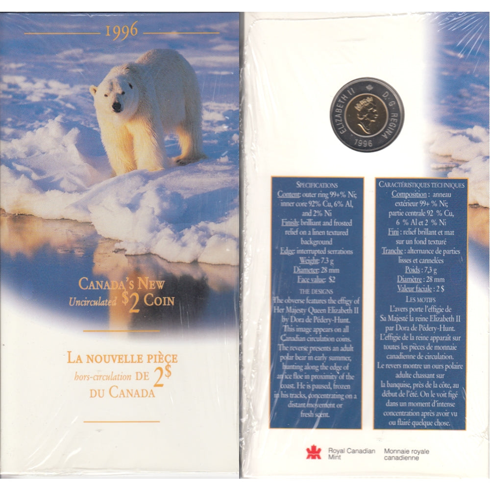1996 Specimen Canada $2 in Original Folder as Issued by the Mint. Canada's New $2 Coin!