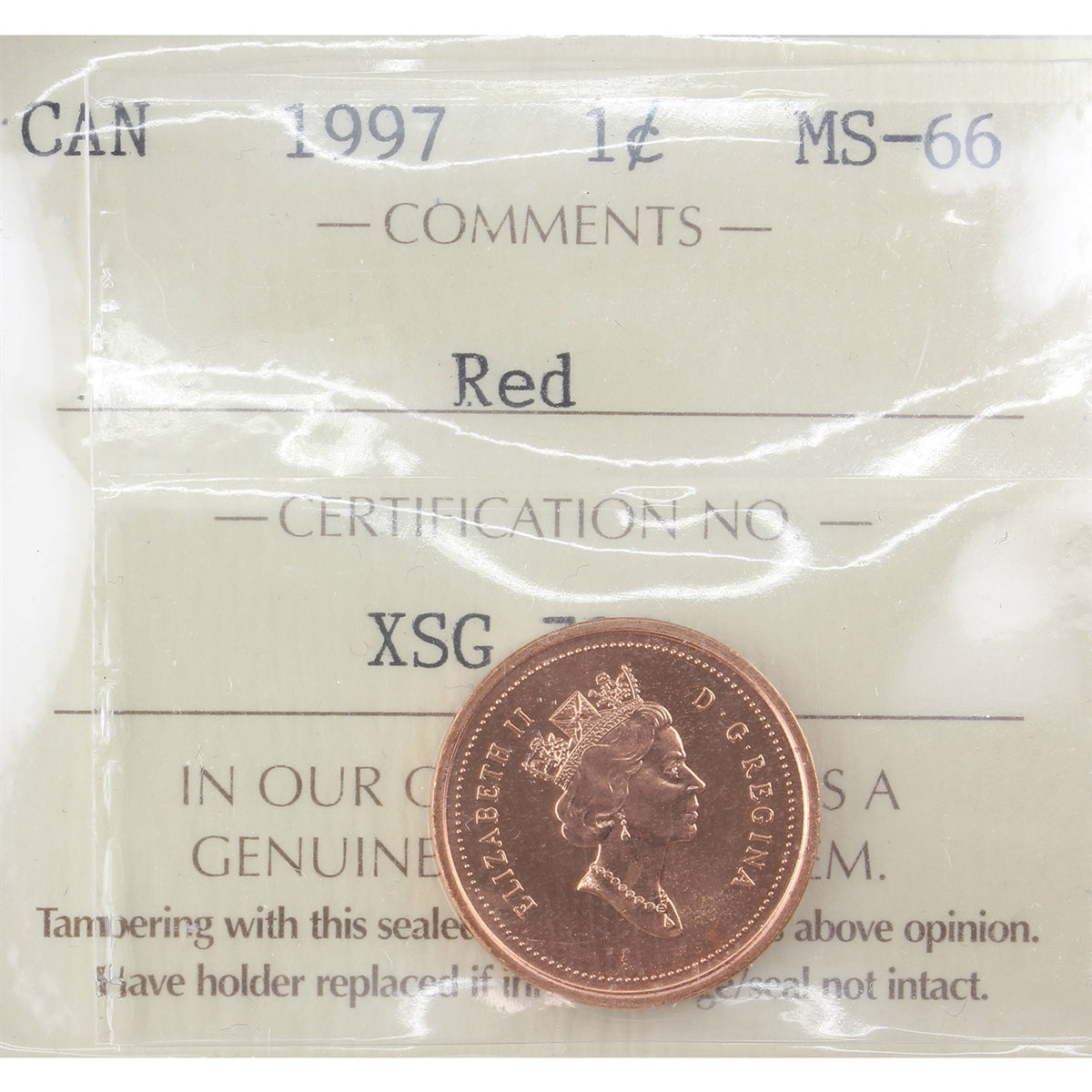 1997 Canada 1-cent ICCS Certified MS66 Red