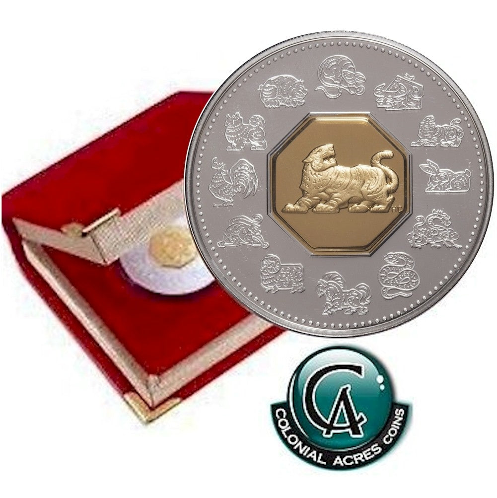 1998 Canada $15 Year of the Tiger Sterling & Gold Plated Cameo