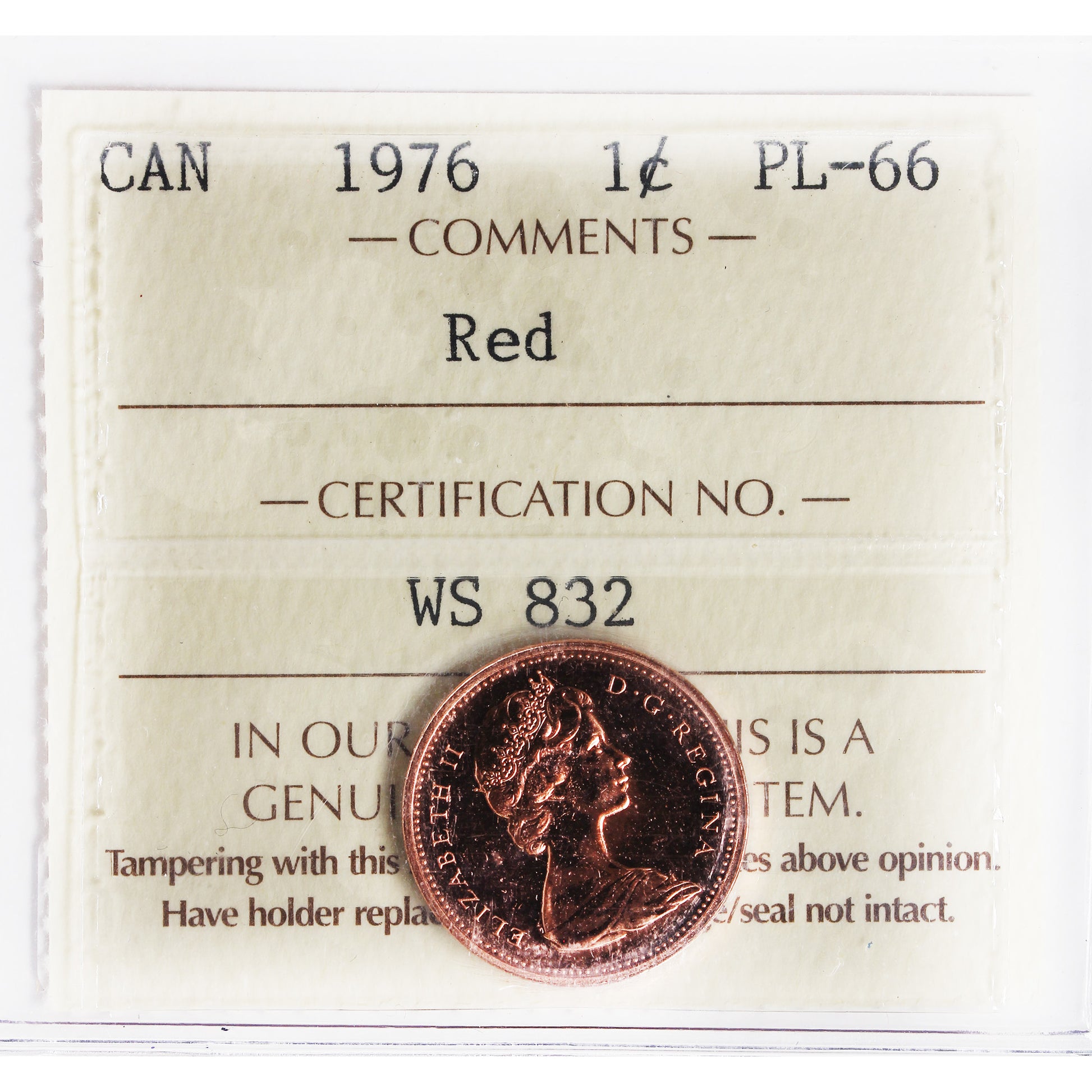 1976 Canada 1-cent ICCS Certified PL66 Red