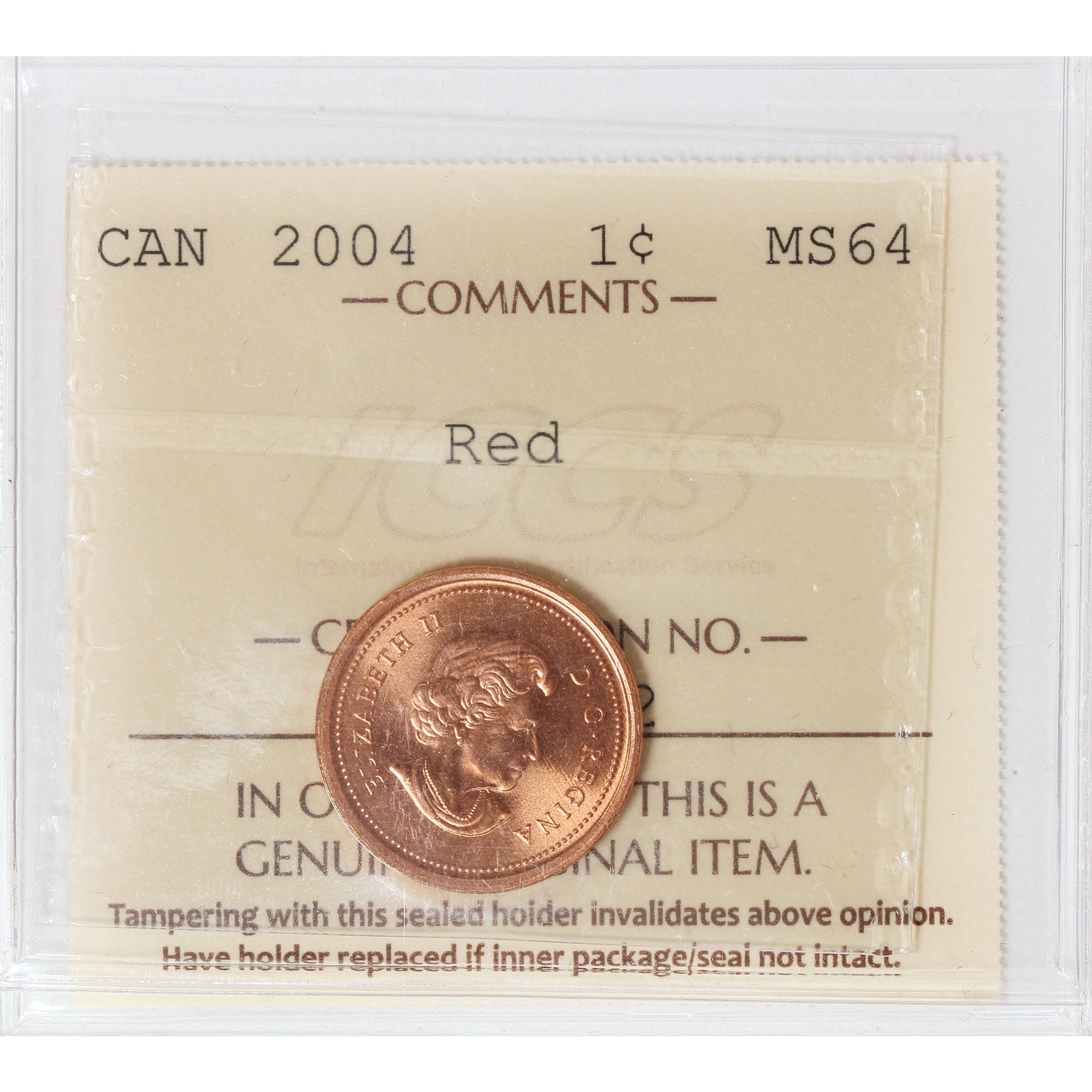 2004 Canada 1-cent ICCS Certified MS64 Red