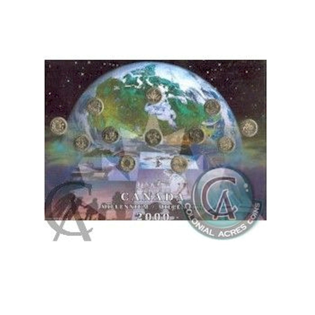 2000 Millennium Board with 12x 25-Cents w/Coins. Coins may be circulated. Image is an example of the set.