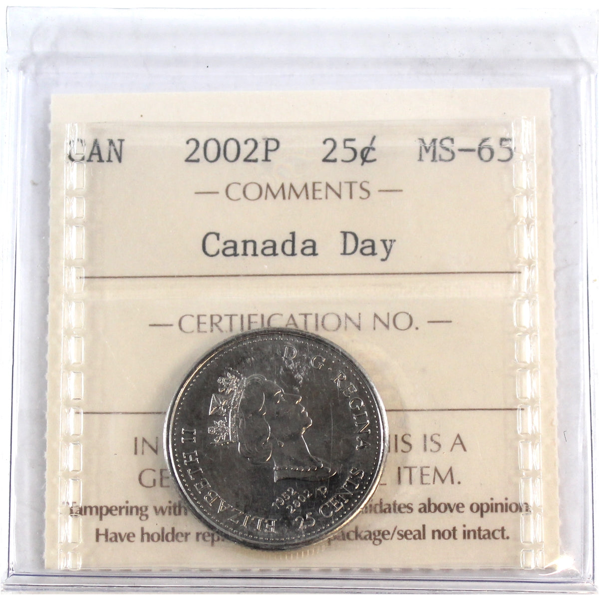 2002P Canada Day 25-Cents ICCS Certified MS-65