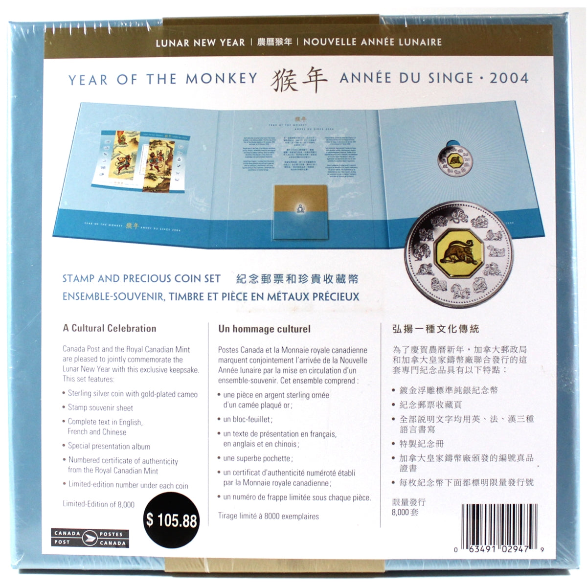2004 Canada $15 Year of the Monkey Sterling Silver Coin and Stamp Set (Sealed)