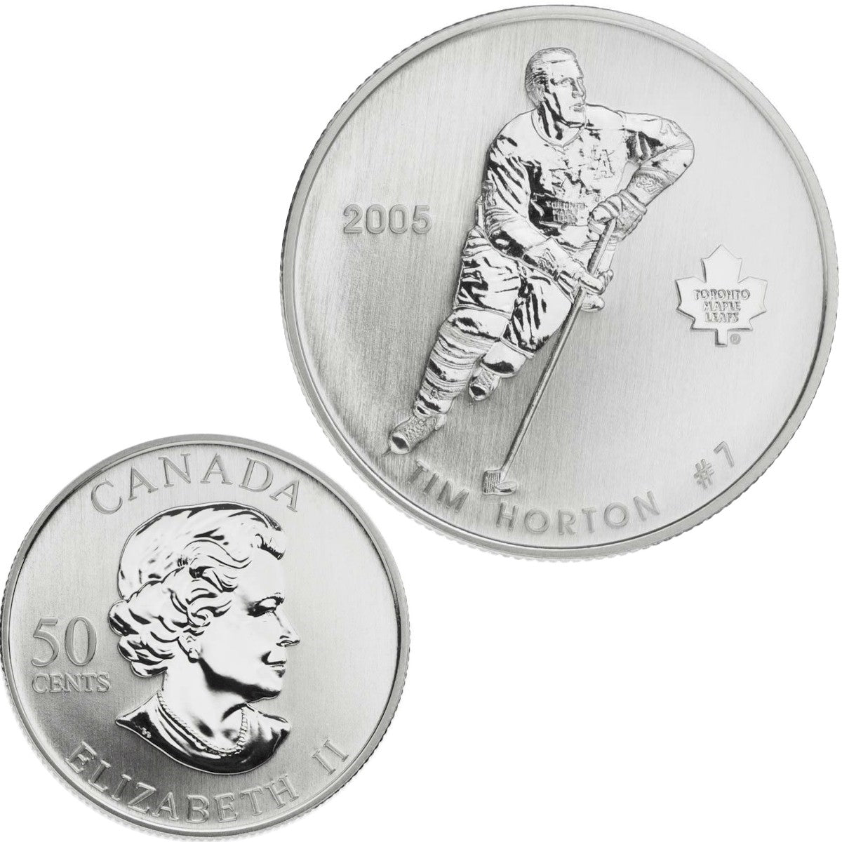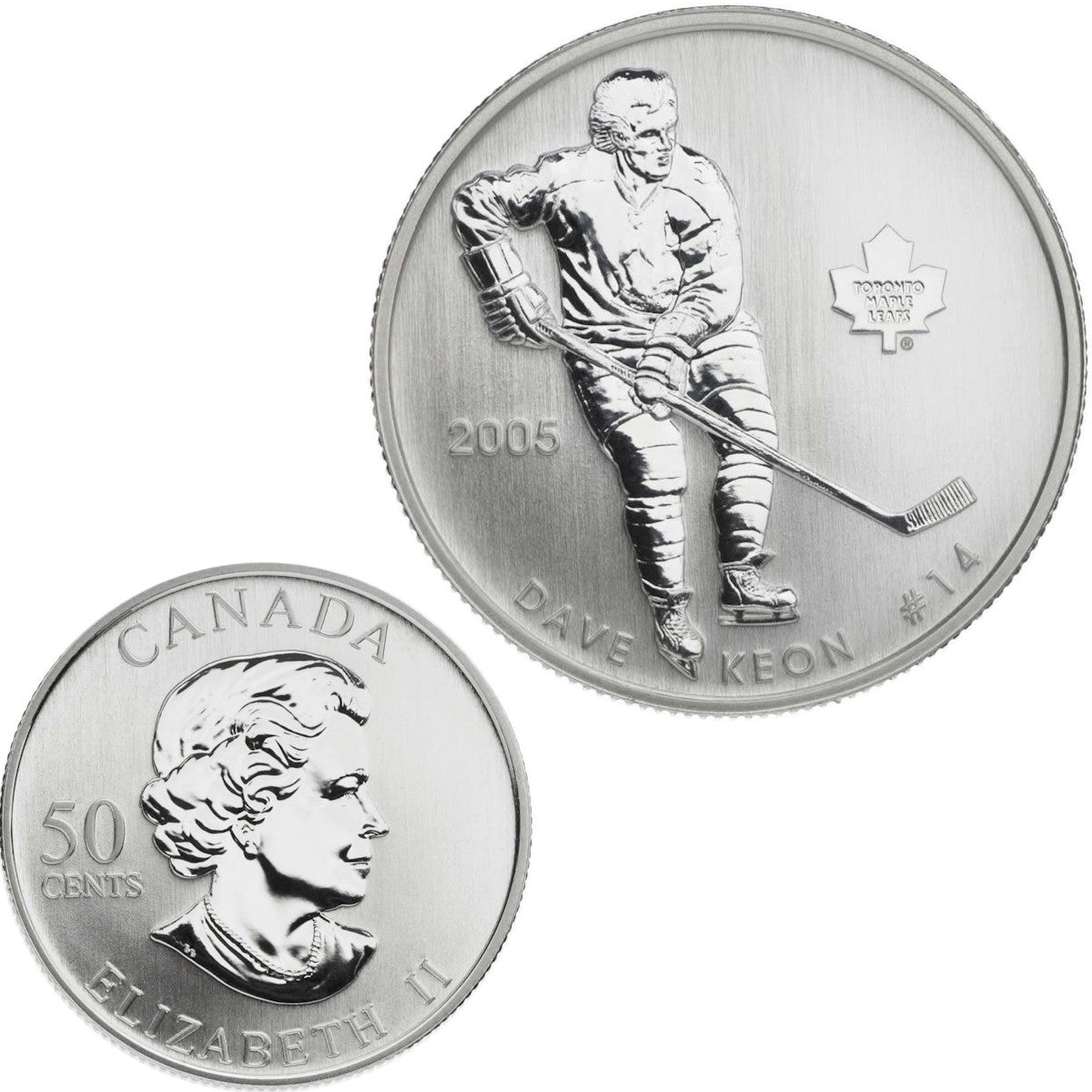 Coins feature Johnny Bower (Goaltender), Tim Horton (Defenceman), Darryl Sittler (Forward) and Dave Keon (Centre).
