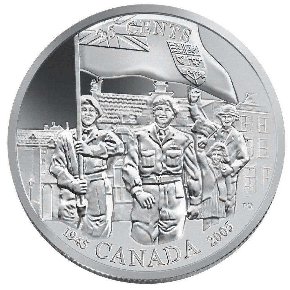 2005 Canada Liberation of the Netherlands 25-cents Silver Specimen.