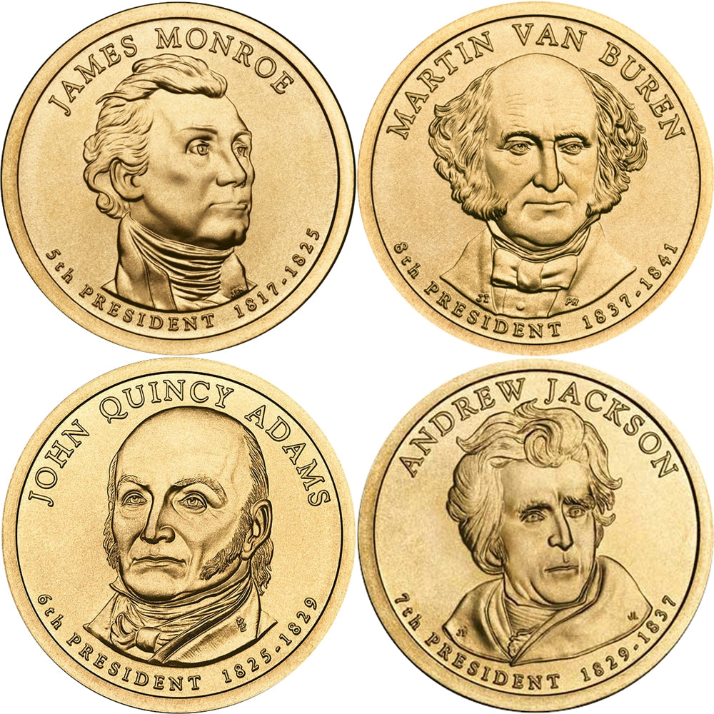 2008 USA Presidential One Dollar Coin Set: Buy the Monroe, Adams, Jackson, and Van Buren 2008 Presidential Dollars, both P and D singles (total of 8 coins).