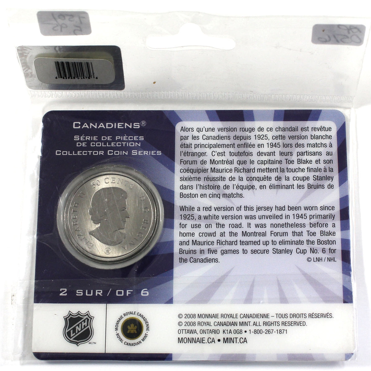 2009 Canada Montreal Canadiens 50-cent Special Issue 1945-1946 Uniform Coin in Card - Number 2 of 6 (White/Blue/Red)