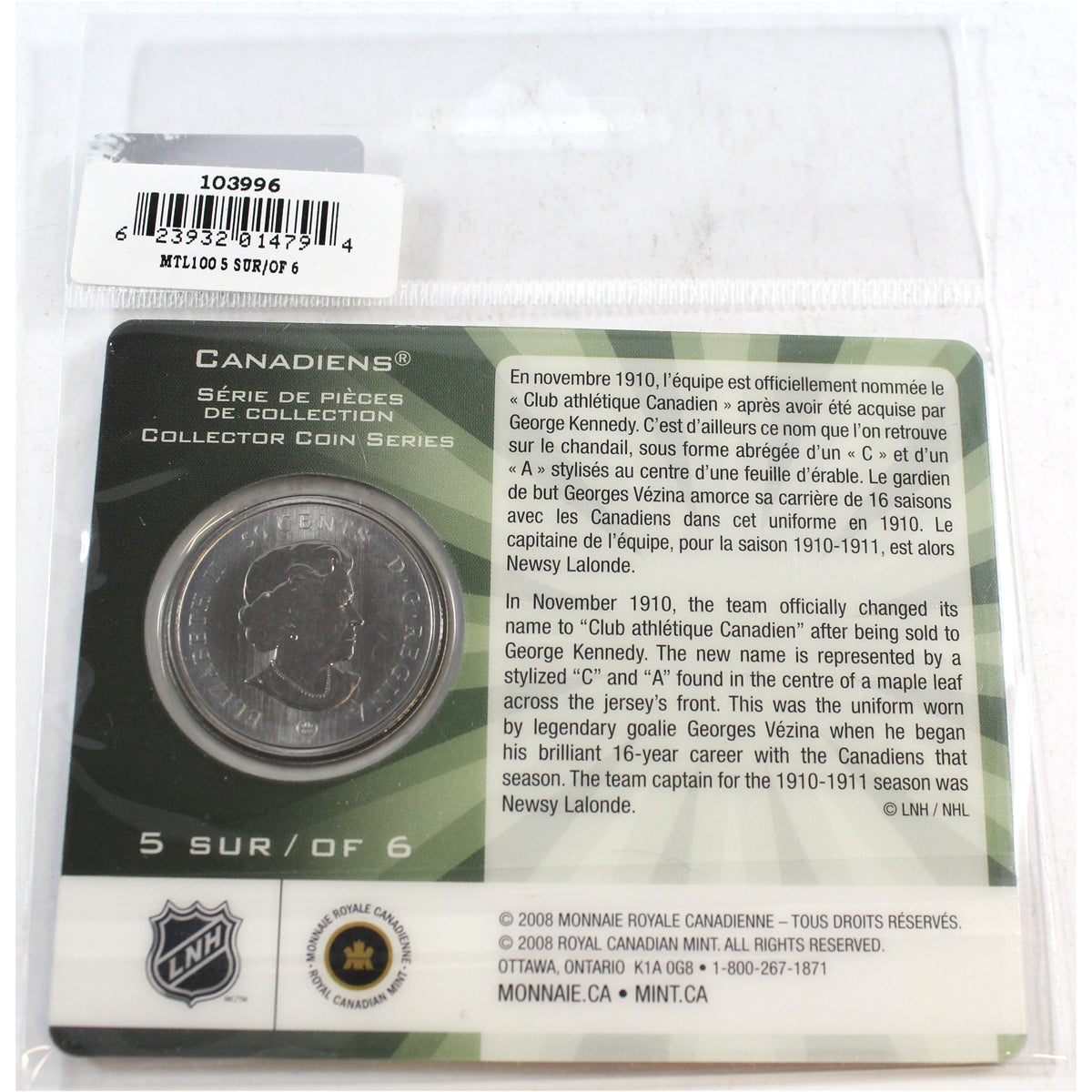 2009 Canada 50-cents Montreal Canadiens Jersey Coin in Card (1910-1911) #5 of 6. Image is an example of what you will receive.
