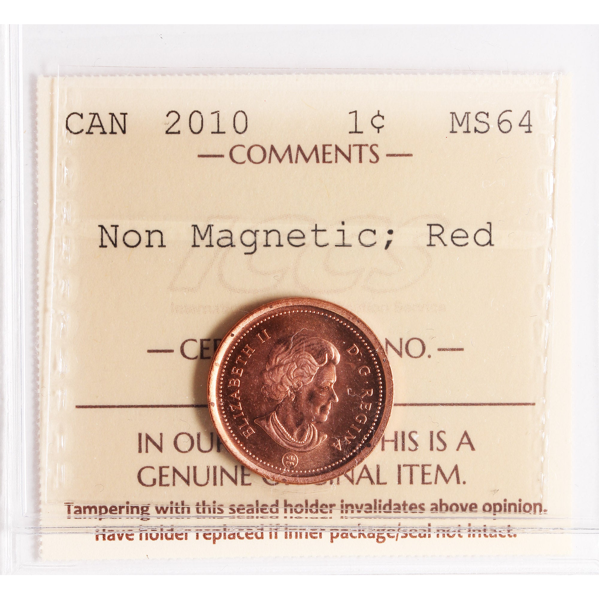2010 Non-Magnetic Canada 1-cent ICCS Certified MS64 Red